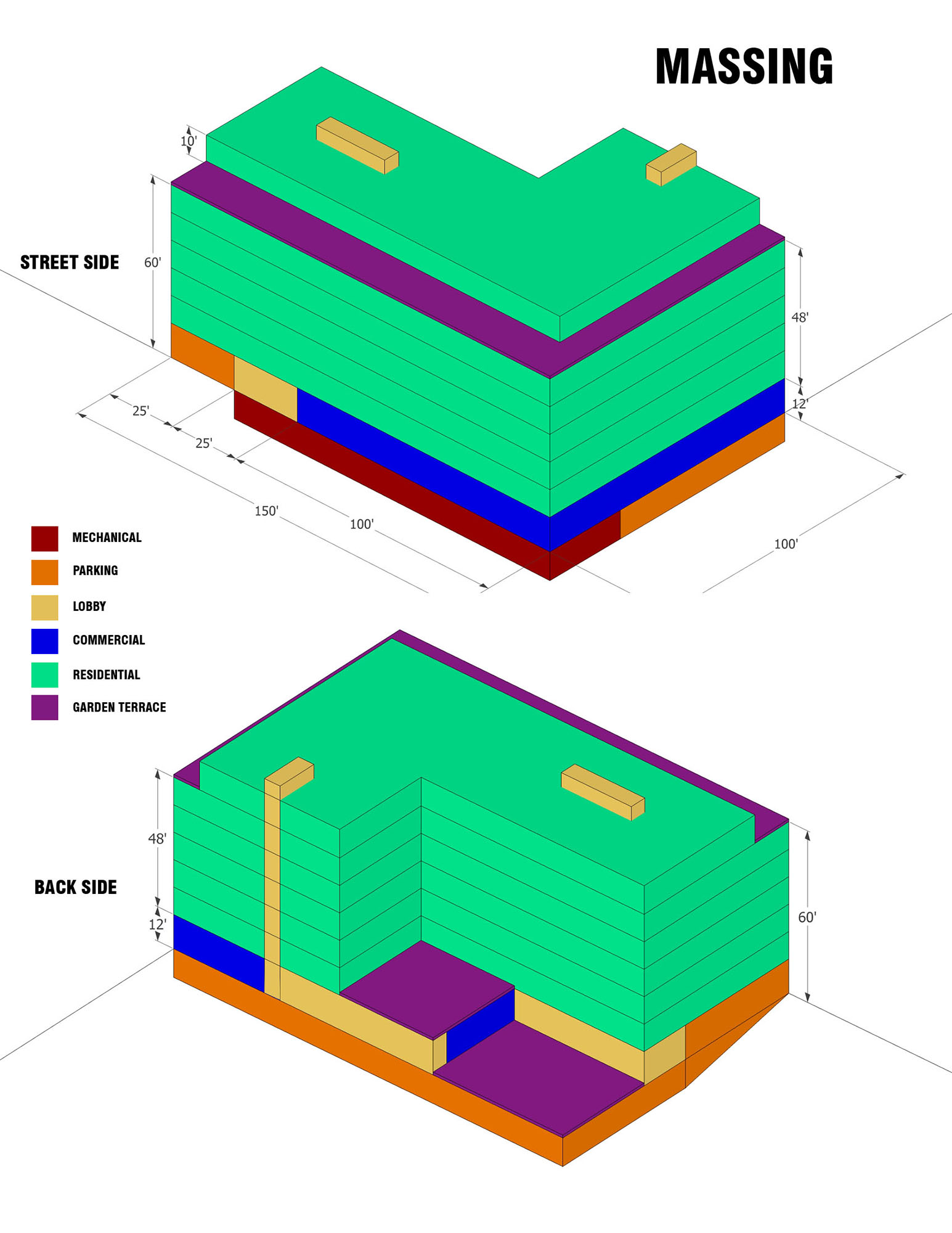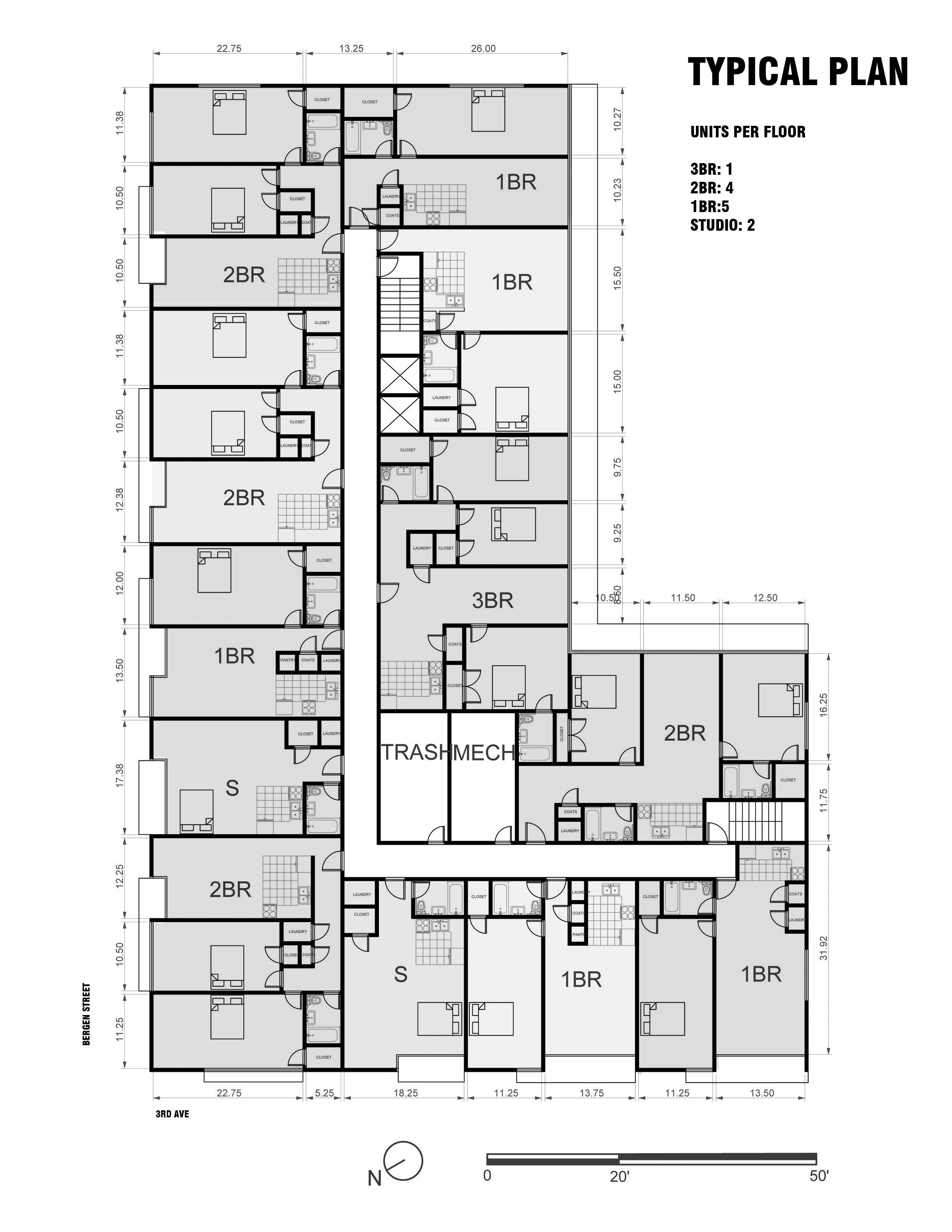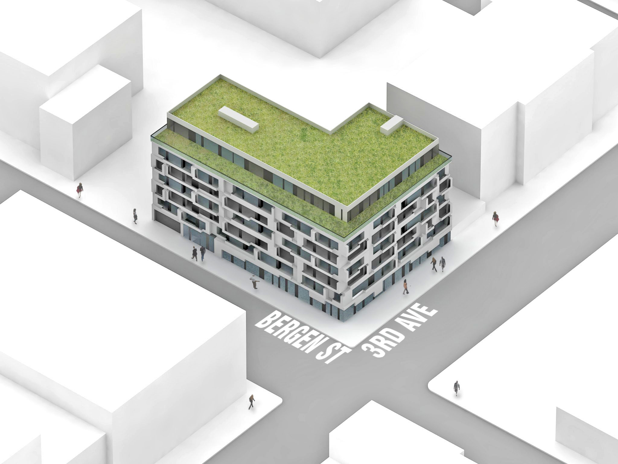 The objective of this multidisciplinary study was to create an economically viable condominium development by assembling three underutilized parcels in an industrial pocket of downtown Brooklyn. While the massing aims to maximize buildable area and conform to zoning setbacks, and the programming follows a market-driven unit mix and grouping of amenities, an arrangement of shifting facade planes inspired by the De Stijl movement creates a dynamic pattern of balconies and privacy barriers on the street side.